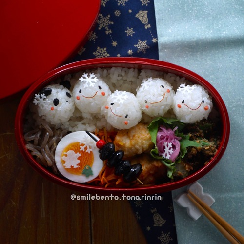 こんにちは。今日のパパさん弁当は…今日はクリスマスを意識したお弁当久しぶりにあの方も登場!雪の結晶の髪飾りでクリスマスあの方はやっぱり横顔が···